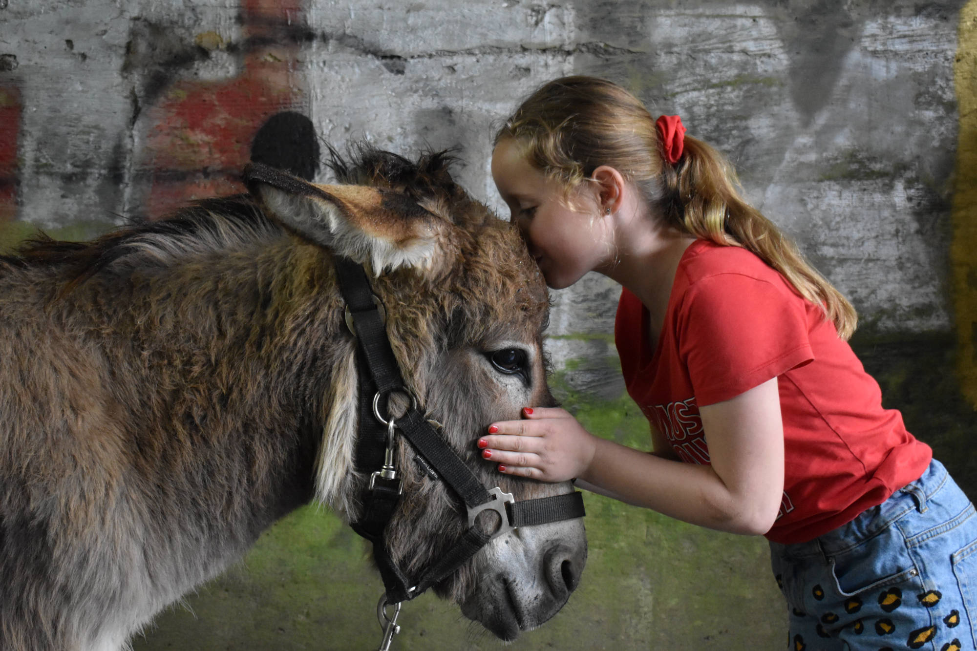 Het knuffelen van de ezels is een unieke ervaring. Hun warmte en aandacht is hartverwarmend. De vacht is ieder seizoen weer voelbaar anders. In de winter kun je heerlijk met je vingers door de dikke vacht heen kroelen. In de zomer is de vacht glad en zacht. Oog in oog staan met de trouwe kijkers van de ezel. Een aanraking op de fluweelzachte neus.…Het zijn net levende pluche knuffeldieren.